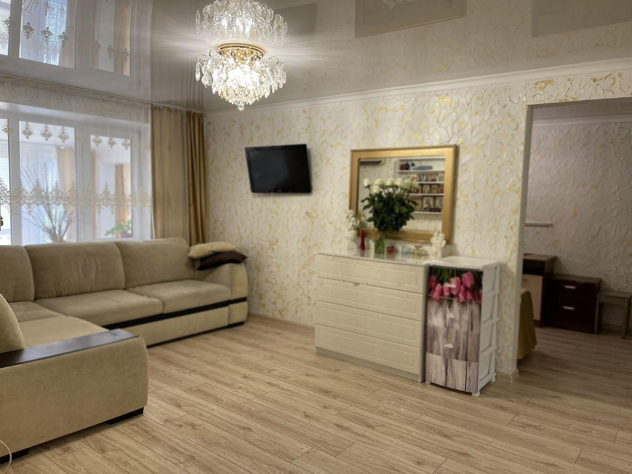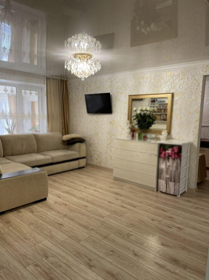 Продаётся двухкомнатная квартира С ОТДЕЛЬНЫМ ВХОДОМ 57 кв.м. в Анапе, в районе Южного рынка. Этаж 1/5.  Квартира, как маленькая трешка. Есть узаконенная пристройка. Новый ремонт. Новые электропроводки. Отдельный вход. Облагороженная территория. Код 11435